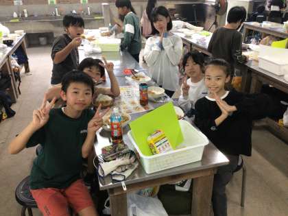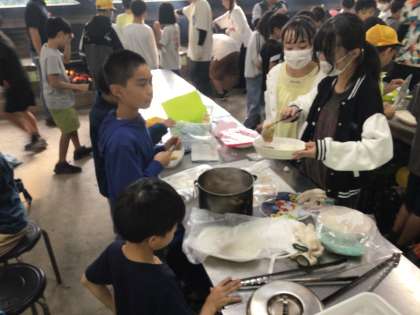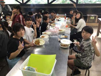 カレーが出来上がった班からいただきました。仲間と協力して作ったカレーライスは最高に美味しいです。