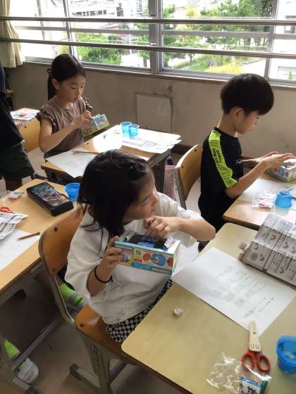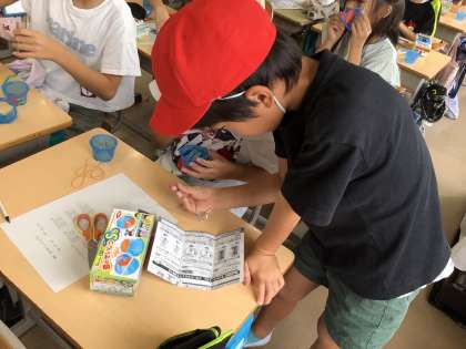 音のせいしつを実験キットを使って確かめて、結果を記入しました。お互いに協力して実験を進めました。