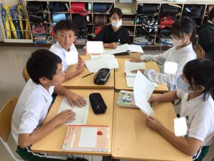 6年 国語 公開日 2025/10/16 更新日 2025/10/16 各学年から 教材「模型のまち」。主要人物以外で重要な人物は誰だと思うか、修学旅行の活動班で意見交流しました。一人一人の理由の中に、この作品の表現の工夫が表れていました。長文の物語ですが、今回は見つけられなかった表現の工夫をたくさん見つけましょう。