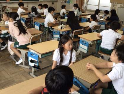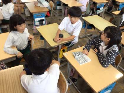 4年 対話タイム 公開日 2025/10/16 更新日 2025/10/16 各学年から 朝の対話タイムの様子です。 好きな本について話しています。話を続けられるよう、質問をしたり相槌をうったりしています。 実際に本を見せながら話す子もいて、いろいろな話し方もできています。