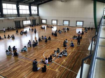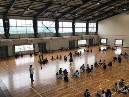 本番に向けて体育館で練習を行いました。いい形で本番を迎えられるよう頑張っています。