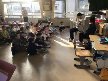 図書委員が担当クラスへ行き、読み語りを行いました。読み方はもちろん、本の持ち方やページのめくり方なども練習しました。