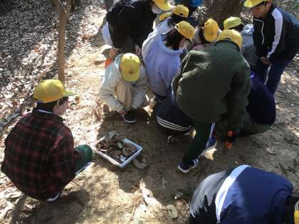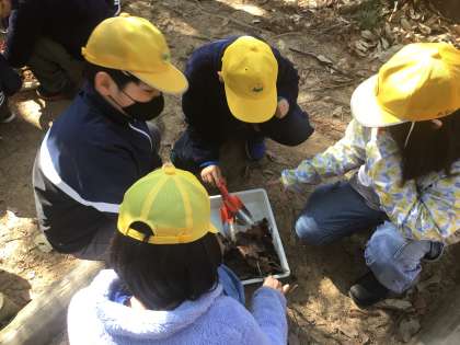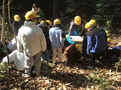 校外学習の活動の様子です。自然林と人工林との違いを観察しに行きました。