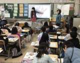 音楽科の授業の様子です。「こぐまの二月」を主な旋律や低音のパートに分かれて鍵盤...