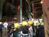 東大寺の大仏の大きさに驚きました。その後、柱くぐりに挑戦する児童もいました。