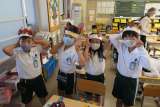 教室をまわっていると、1年生が「見て、見て」と声をかけてくれました。落ち葉を飾っ...