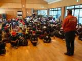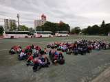 六所に着きました。気温は12度、曇り空で肌寒いです。入所式を行っています。