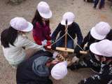火おこしをしています。なかなか火がおこせません。