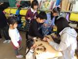 1年1組、1年2組が、自然観察の森に行きました。森の中を歩いて生き物の痕跡を探...