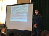 消防署の方から日々の仕事内容や消防署の設備についてお話をしていただきました。火...