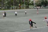 5年生体育の授業です。ジャベリックボールという道具を使い、ボールの投げ方の練習...