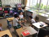 3年生の国語の研究授業です。司会者、参加者の役割を意識しながら、話し合いの練習を...