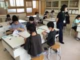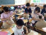 5年生の家庭科では、玉結び、玉止めを行う授業でした。親指と人差指を使って、くる...