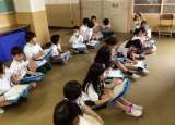 ジェスチャーを交えながら学習に取り組んでいました。英語の歌では、廊下まで元気な...