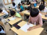 ローマ字の書き方の練習をしています。自分の名前をローマ字で書けるようになりまし...