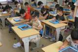 1年生が、デジタルドリル教材(AI型教材Qubena)の使い方を練習しています。...