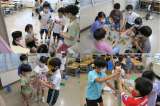 縦割り遊びをしました。今回は「空き缶積み」です。6年生が内容やルールを考え、空き...