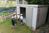 4年生が、防災用倉庫について調べています。中にはたくさんのダンボール箱がありまし...
