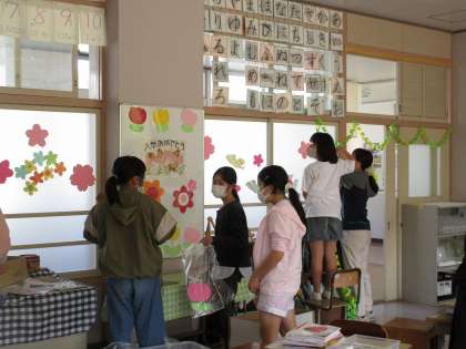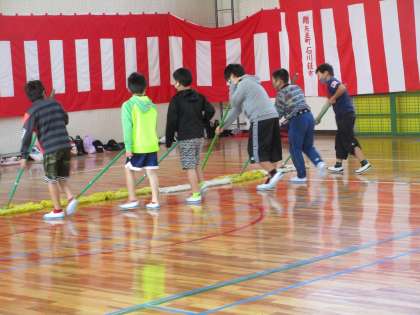 4月5日。入学式前日ですが、4・5・6年生が登校し、入学式・始業式の準備を分担し、協力して行いました。
