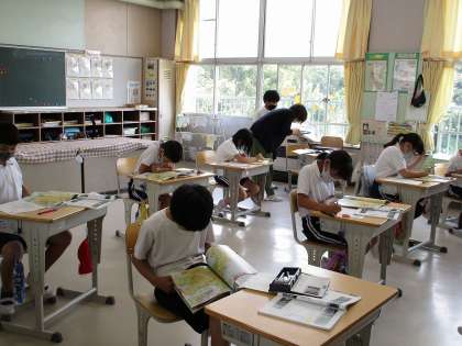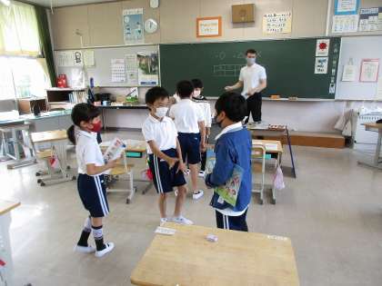 5月31日の授業の様子です。3年生はALTと一緒の外国語活動でじゃんけんゲームを、4年生は社会で地図帳から必死で探し、5年生は道徳で自分の考えを書いています。今日で5月も終わり、暑くなってきましたが、学習にしっかりと取り組んでいます。