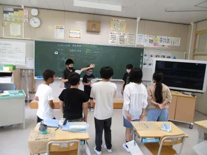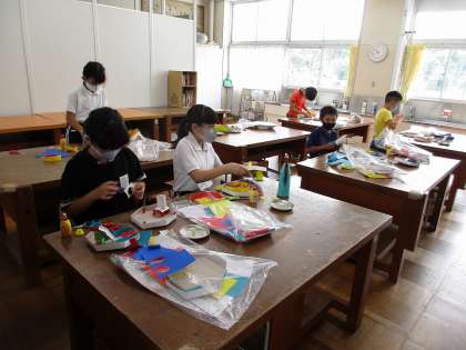 雨が降ったりやんだりし、蒸し暑い日々ですが、子どもたちは前向きに学習に取り組んでいます。7月5日には、ICT支援員の方にきていただき、タブレットを使ってプレゼンテーションを作るなど、全学年でタブレット学習をしました。5・6年生は湿地学習に取り組んでいます。湿地で発表する練習を、お互いに見合い、改善点等話し合いをしていました。4年生はコロコロガーレの作品作りに夢中。放課でも一生懸命作っていました。