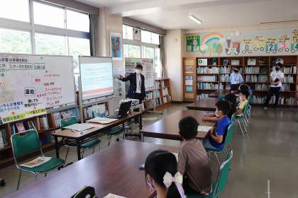 9月15日、豊田市中央図書館の方がきてくださり、調べ学習の方法について3・4年生が学習しました。本の引用の仕方など、いろいろなことを教えていただきました。また、自宅でのオンライン学習の準備として練習を行っているクラスもありました。いろいろな場合にも対処できるよう、様々なタブレットの活用を進めていきます。