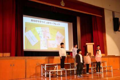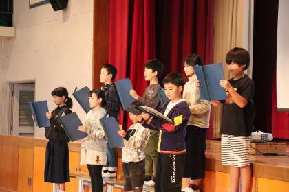 11月13日、学習発表会を行いました。今まで自分たちが学習してきたことをそれぞれ発表しました。1・2年生は音楽で習った鍵盤ハーモニカと体育のダンス、3年生は国語と総合で学習したパラリンピックについて、4年生は総合で学習した今までの自分を振り返った二分の一成人式を、それぞれ自分たちでパワーポイントやセリフを作るなど工夫して発表しました。
