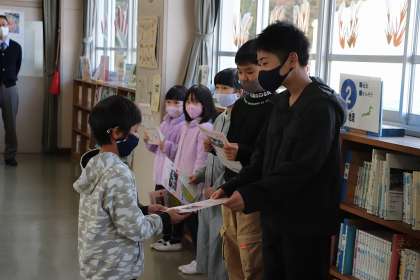 11月30日、11月のお誕生日の子に、カード渡しの会を行いました。それぞれのなかよし班の子や校長先生から良いところを言ってもらい、カードをもらった子たちはみんなニコニコしていました。自分の今年頑張ることとして、すでに来年度の自分を見据えて言っている子もいてうれしくなりました。お誕生日おめでとう!