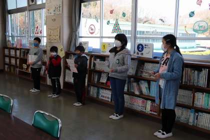 12月20日、12月の誕生日カード渡しを行いました。なかよし班の友達や、校長先生から言葉とカードをもらい、嬉しそうでした。その後、自分が頑張りたいことを一人ずつ話しました。来年度のことを話す子もいて、すでに次の学年へ向かって頑張ろうという気持ちが伝わってきました。この1年間でまた大きく成長してほしいです。