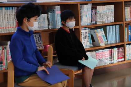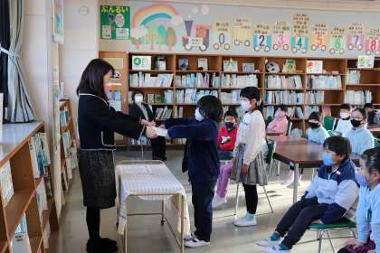 12月23日、明日から冬休みです。コロナも収まっているので、全校児童が集まり、冬休み前集会を行いました。代表児童2名の子たちが、自分たちが頑張ってきたことと、これからがんばりたいことを話しました。2人ともとてもしっかり話すことができました。校長先生からは、「休み中に大掃除やゴミ拾いなどを頑張って、幸せを手にしてほしい」というお話がありました。夏休み後に応募した科学研究や、赤い羽根での作品で優秀だった子の表彰も行いました。
