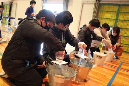 1月12日、豊田市が開催する「科学わくわく講座」を行いました。豊田市名誉市民である藤嶋昭先生をお迎えし、身の回りの科学の不思議な話を聞いたり、実験を行ったりしました。水を入れたコップに紙をあて、ひっくり返してもこぼれない実験では、「すごい!」「みてみて!」「なんで?」など様々な驚きの声があがりました。楽しく学習することができました。