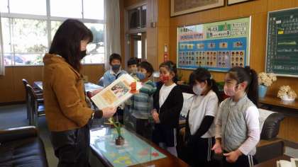 その後、校長室にて、明日の入学説明会で来年度入学する園児へのプレゼントを校長へ渡しに来てくれました。4月からお兄さん、お姉さんになる準備ができてきました。