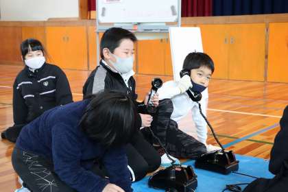 2月28日、3年生が郷土資料館から講師をお招きし、昔のくらしについて学習をしました。昔の洗濯機、はかり、黒電話など、昔の物をいろいろ見て、いろいろ触って大喜び。「これ、知ってる!」「これは何だ?」と楽しく学習しました。