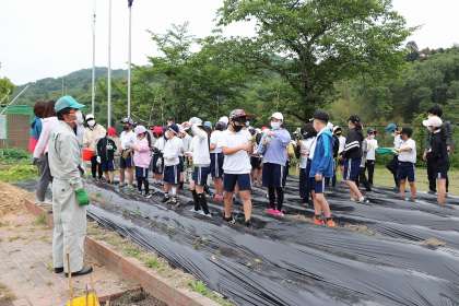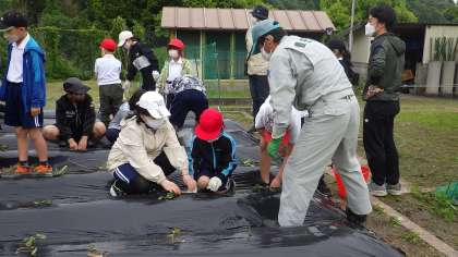 5月17日、なかよし班でさつまいもの苗さし会を行いました。地域の方から、苗のさし方を教えていただき、全員で苗さしをしました。初めての体験におそるおそる行っている1年生に、なかよし班の6年生が優しく教えているすてきな姿をたくさん見ました。これからなかよし班で水やりを行っていきます。秋に収穫するまで、さつまいもも、なかよし班のつながりも、大きくなってほしいと思います。