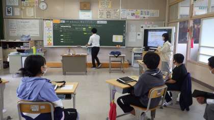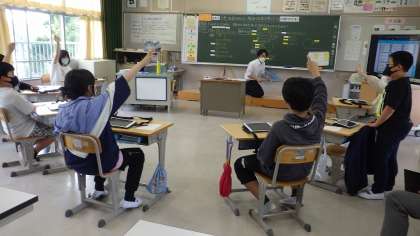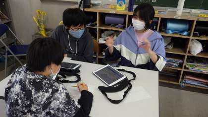 5月27日、6年生が理科の学習をタブレットを使って行っていました。問題(この時間の課題)を自分たちで作り、それに対して予想をし、実験方法を考え、検証していくということをタブレットを使い、予想を書き込んだり、グループで話し合う時に見せて説明したり、全員で話し合う時に大型テレビに写して共有したりと使いこなし、さすが6年生だなあと感心しました。