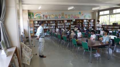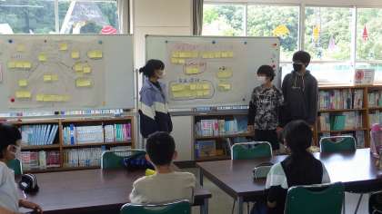 今年度も矢並湿地の学習が始まりました。6月3日には、自然観察の森のレンジャーさんにきていただき、5・6年生がガイドのための研修を行いました。ガイド学習の基本的な進め方を教えていただき、校庭で観察するものを探したり、図書館でKJ法を使って意見を出し合ったりし、湿地ガイドへ向かう第1歩を踏み出しました。今年度は現地でのガイドも予定しています。子供たちが矢並湿地を大切にしていこうという気持ちがもてるよう、進めていきたいと思います。