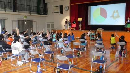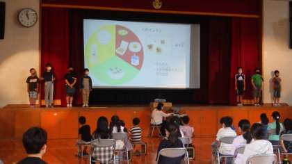 6月17日は学校保健委員会でした。今年度は「食」をテーマに保健委員会の子供たちが家での食事についてアンケートをとり、まとめて、クイズなども取り入れながら発表しました。