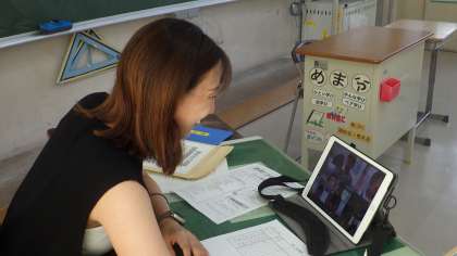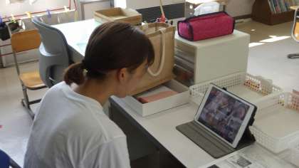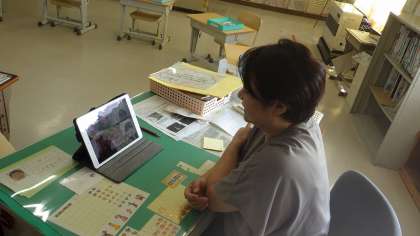 8月20日、オンライン出校日を行いました。今までは登校して出校日を行っていましたが、熱中症の心配があり、今年度、タブレットを使い、オンラインにしました。久しぶりに会う子どもたちはみんなとても元気な様子で、夏休みのことなどを担任と話しました。人数が少ないからこそ、オンラインでも一人一人の顔をじっくりと見て、話をすることができました。