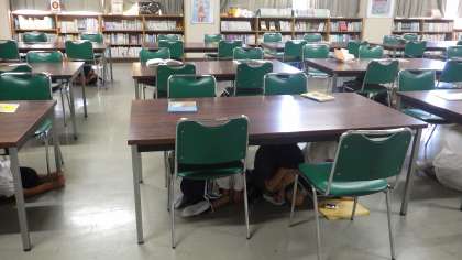 また、この休み時間にJアラートの避難訓練もありました。子どもたちは読書をしていてもすばやく机の下にもぐり、しっかり避難をすることもできました。
