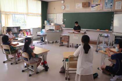 9月12日、久しぶりになかよし班遊びをしました。感染症対策をしながら、遊んだり、誕生日の子がいる班は誕生日カードを書いたりしました。新聞に乗り、じゃんけんに負けたら小さく折っていくゲームや、宝探しなど、楽しそうに遊んでいました。もともと異学年でも仲良しの子どもたちですが、なかよし班遊びは、それぞれの立場を考えながら、あまり話したことがない子とも遊んだりできて、矢並の優しい子どもたちの人間関係を育ててくれます。