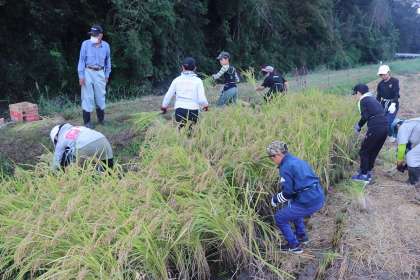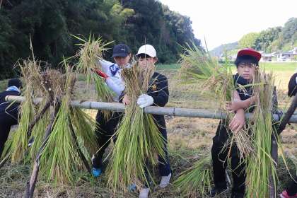9月13日、今日はとてもよい天気でした。そんな中、5月の田植えからずっと5年生が観察を続けてきた稲も実り、今日は稲刈りをしました。地域の方のご指導のもと、鎌で自分の育ててきた稲を刈り、はざかけをしました。みんな慣れない手つきでしたが、一生懸命に刈っていました。これからお米にしていきます。