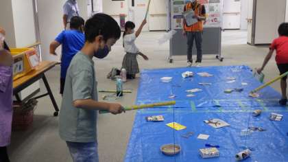 午前の目的地は「エコット」。ここでは豊田市の可燃ごみがどのように処理されているかを学びました。最後は、魚釣りゲームを通じて、4年生全員がごみの分別について詳しくなりました。
