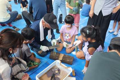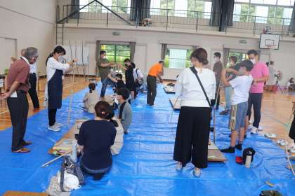 地域の方が11人も講師として教えにきていただき、また保護者の方も全員参加して子どもたちと一緒におもちゃを作ってくださいました。今年度は1・2年生がけん玉、3・4年生が空気鉄砲、5・6年生が弓矢を作りました。作ったおもちゃで楽しくみんなで遊びました。