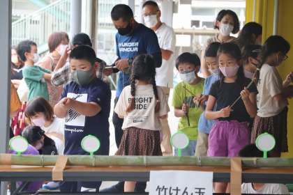 9月17日、今日はふるさと学級がありました。これは、矢並の竹を使って、おもちゃを保護者の方と一緒に作って遊ぶという矢並小学校に伝わる学校行事です。