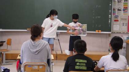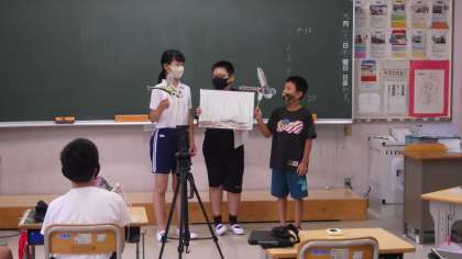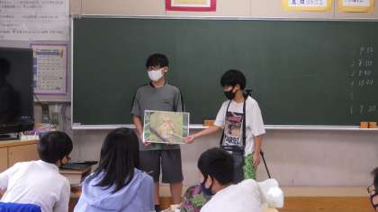 9月22日、5・6年生が今度の湿地で行うガイドの練習をしていました。発表者と現地でのお客さん役とに分かれ、質問したり、それに答えたり、本当のガイドの日のような練習です。自分たちで調べたことを言うだけでなく、どうしたらわかりやすいか、お客さんをどうやって巻き込むかなど、いろいろ工夫をして行っています。まずは27日、現地でのガイドリハーサルの日目指してがんばっています。