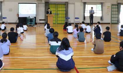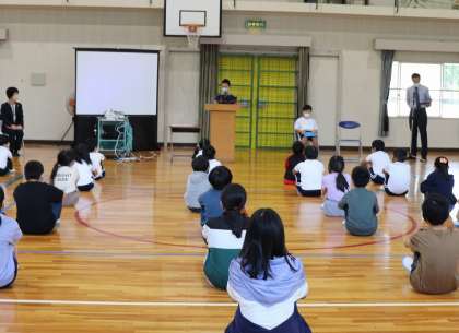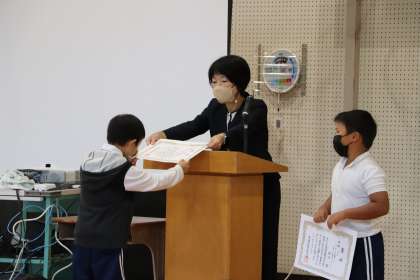 10月12日、後期がはじまりました。矢並湿地ガイドが8日にあり、11日が代休だったため、一日遅い始業式となりました。代表の子2人が、「野球や計算をがんばりたい」「学級委員としていろいろがんばった」など、今までがんばったことやこれからがんばりたいことをしっかり発表しました。校長先生からは、本校の目標である「つなぎ 新たな一歩を踏み出そう」の「つなぐ」について、後期は特に「あいさつ」でつなぐことを頑張ってほしいという話がありました。子どもたちはみんな真剣に話を聞いていました。表彰伝達も行いました。
