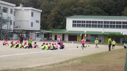 11月7日、今日は全校でリレーの練習をしました。初めはなかなかうまくバトンパスができませんでしたが、チームで練習し、テイクオーバーゾーンを上手に使い、走りながらバトンパスができるようになりました。