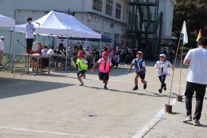 小学校の子どもたちは、今まで一生懸命に練習してきた、低学年競技・高学年競技・全校リレーを披露しました。低学年の踊りはかわいらしく、高学年のソーランはかっこよく、地域の方からも歓声があがりました。