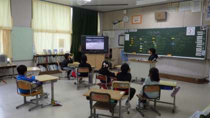 11月28日、今日は雨でしたが、落ち着いて1日を過ごしました。1年生は生活科で春夏秋と比べ、冬のくらしについて、大型テレビを使って、学んでいました。雪が出てくると、「うわあ、雪だ!」「今年も降るかな?」とわくわくしていました。