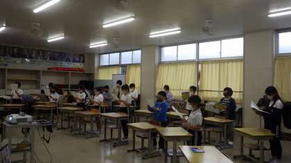 3・4年生は一緒に音楽でした。とてもきれいな声で歌を楽しそうに歌っていました。複式カリキュラムにのっとって行っています。
